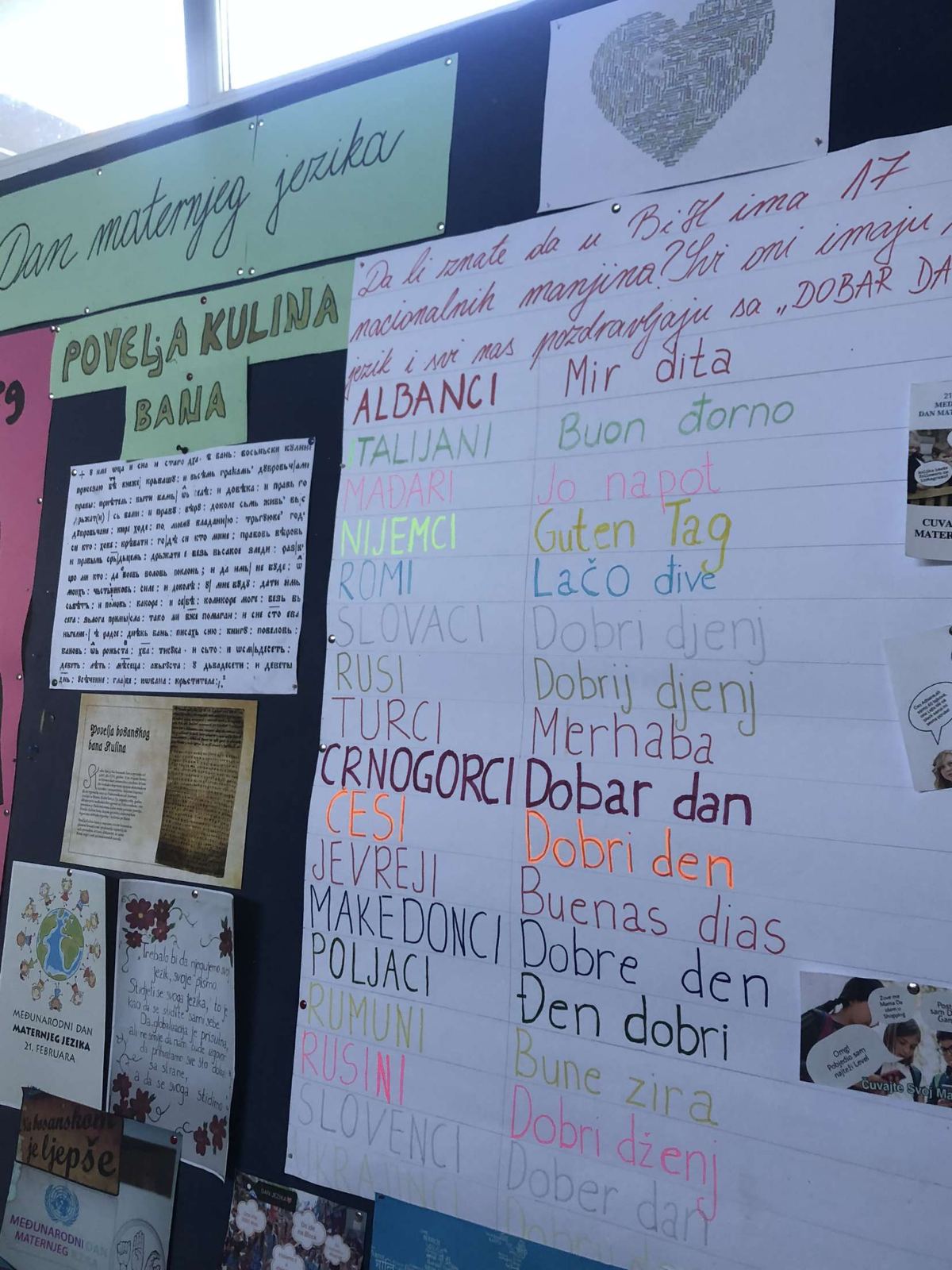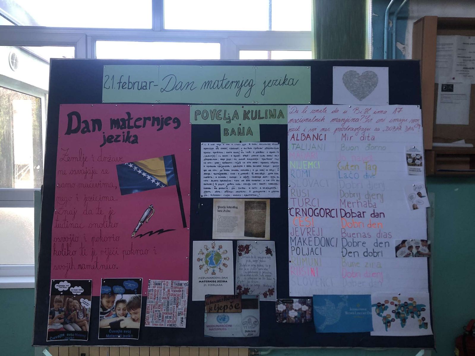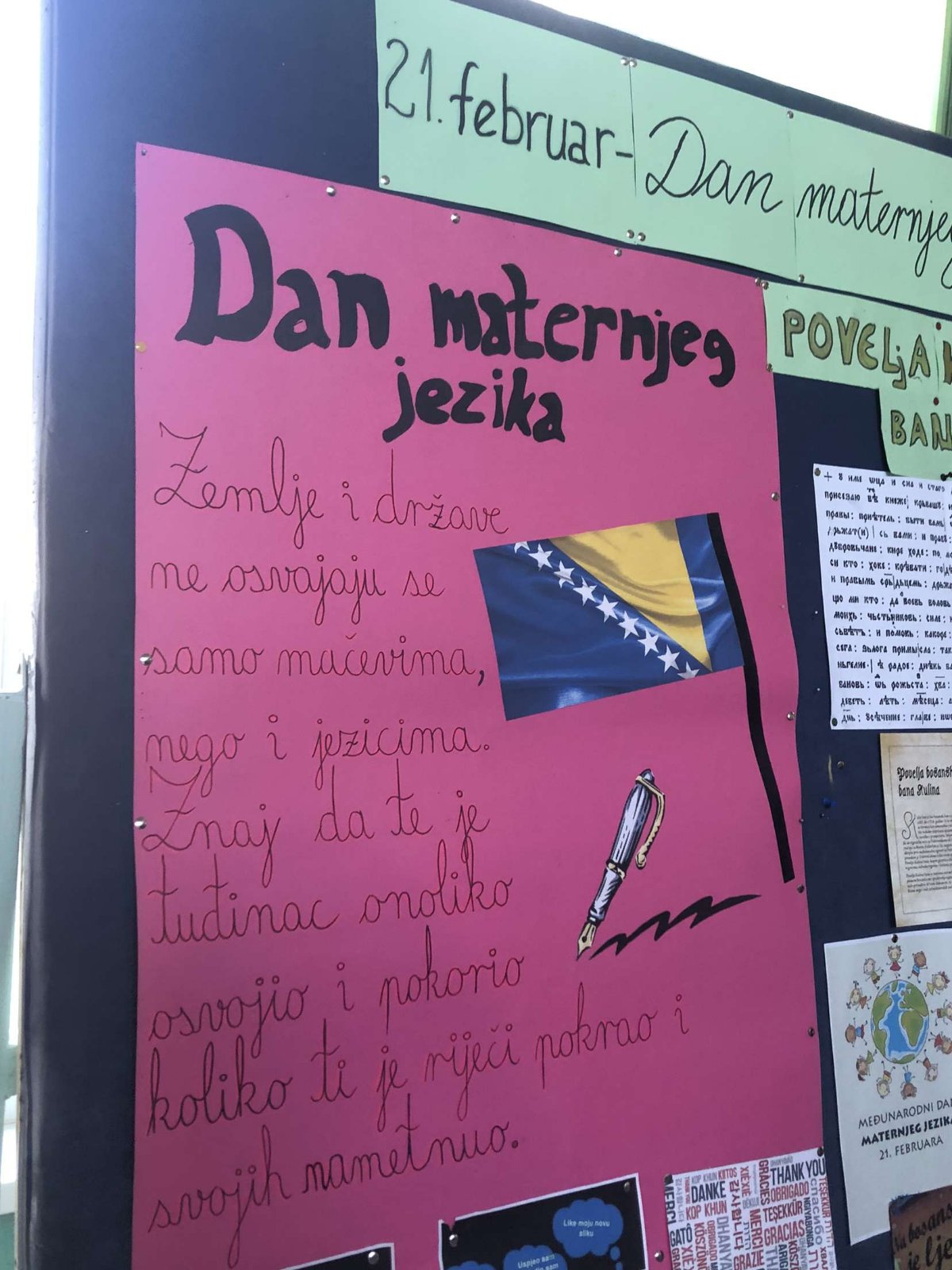 Maternji jezik je prvi jezik sa kojim se dijete susretne u životu, jezik kojim se govori u njegovoj porodici i jezik kojim se uključuje u društvene procese dolazeći do različitih spoznaja i iskustava. Naš maternji jezik je, naravno, bosanski jezik te danas želimo skrenuti pažnju na značaj jezika kao kulturnog naslijeđa i važnog dijela identiteta svakoga čovjeka. Dakle, danas obilježavamo Dan našega, bosanskoga jezika, ali i svih jezika svijeta pokazujući toleranciju i prihvatanje drugog i drugačijeg.